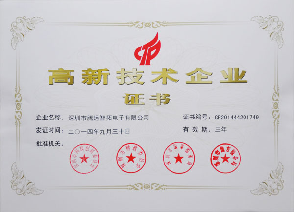 2014年9月30日,深圳市科技创新委员会颁布公示文件:《2014年深圳市第二批拟认定国家高新技术企业名单的通知》,该通知正式评定深圳市通宝TB222电子有限公司为我国国家高新技术企业!