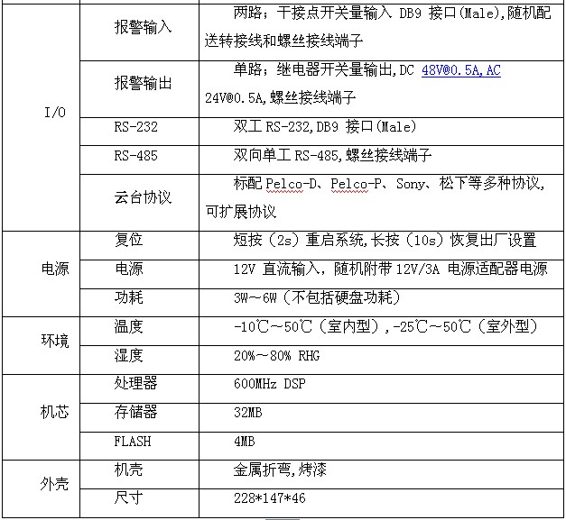 前端视频名称/时间叠加;多种云台控制协议;区域移动侦测,自由设置检测灵敏度;敏感区域遮挡功能;可提供内置电池,内置车载电源模块,方便随身携带或车载应用