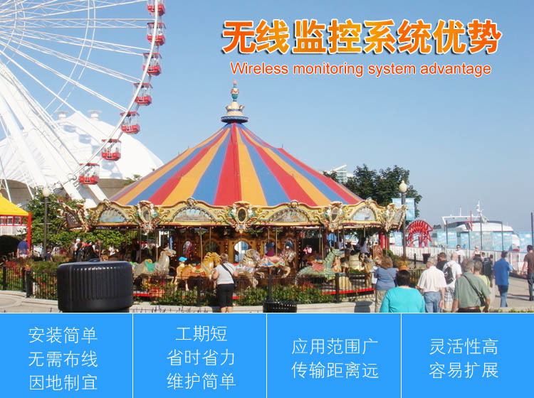 考虑到主题公园、游乐园环境大范围、结构复杂的特点,传统有线视频监控系统存在施工进度慢、人力物力耗费大等弊端。无线视频监控系统凭借其独特优势,成为更适配这类场景的解决方案,能有效节省施工时间与各类成本投入。