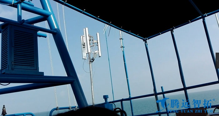 现场情况如下:4台高清网络云台摄像头安装在轮船上,通过整合视频数据之后,通过无线视频传输设备ST5023PRO作为发射端传输回海岸的监控中心。由于轮船的航行范围较大,在航行过程中使得无线视频传输设备的对角较大,因此我司决定在用三个双极化120度扇区天线作为发射端天线,而海岸的监控中心则用全向天线接收。